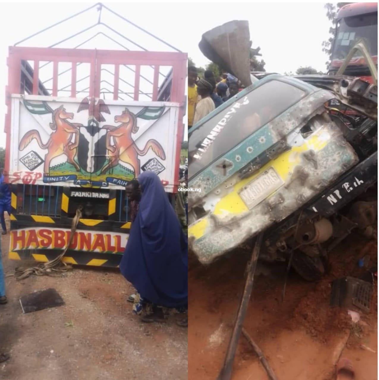 A motor accident claimed the lives of 14 people and left four others injured in Kanya Babba in Ringim Local Government Area of Jigawa State. The accident occurred on Tuesday, July 16, 2024, when a Toyota Hiace bus attempted to bypass an immigration checkpoint and collided head-on with a DAF truck. The spokesperson of the State Police Command, DSP Lawan Shiisu Adam confirmed the incident in a statement. Today, Tuesday, 16th of July 2024, at about 1120hrs, information at the Commands disposal revealed that there was a fatal motor vehicle accident involving a DAF truck with reg. no. GMB 242 KD, coming from Kanya market, the statement read. “On reaching an Immigration checking point, another vehicle, a Toyota Hiace with reg. no. XA 381 GAS, was also coming from the Kano to Kanya market with overloading and at a high speed “When the immigration officers stopped it, the driver refused to stop and attempted to get around the checkpoint by veering into the other lane. As a result, he collided head-on with the aforementioned DAF truck. “The impact of the collision was devastating, with 14 passengers losing their lives instantly and four others sustaining severe injuries “Upon receiving the report, the Divisional Police Officer (DPO) of Kanya Division and his patrol team rushed to the scene. On their arrival, corpses and injured were evacuated and rushed to Kanya Babba Hospital “Corpses were certified dead by a doctor on duty, while the injured are receiving medical attention. An investigation has commenced to find lasting solution and feature occurrence.”