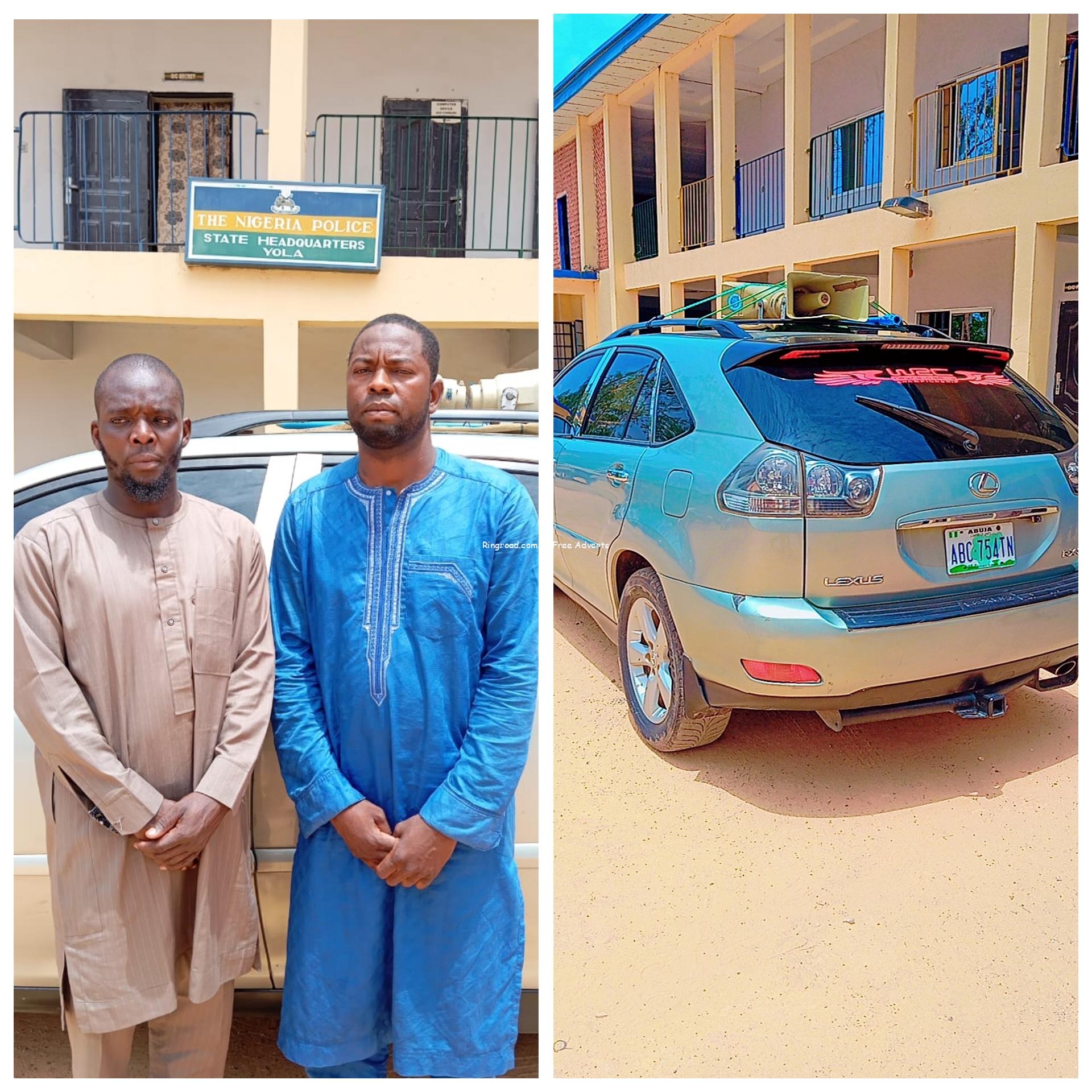 Adamawa police arrest two suspected armed robbers who attacked man in Anambra and stole his vehicle
