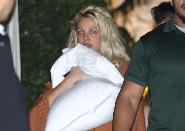 Photos obtained by the New York Post show the singer, 42, leaving the hotel. She was nearly naked, clad in her underwear and clutching a white pillow to cover her upper body. A brown blanket was also thrown over her body and her feet were bare as she was photographed outside the hotel.