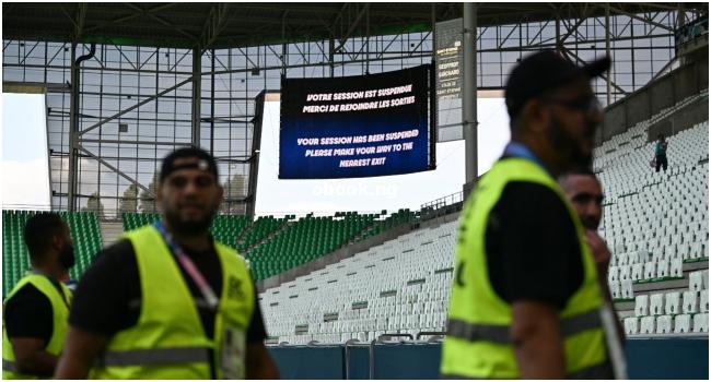 But as their players celebrated, projectiles including bottles and plastic cups rained down from the stands and several spectators entered the pitch, with the referee promptly blowing the whistle.