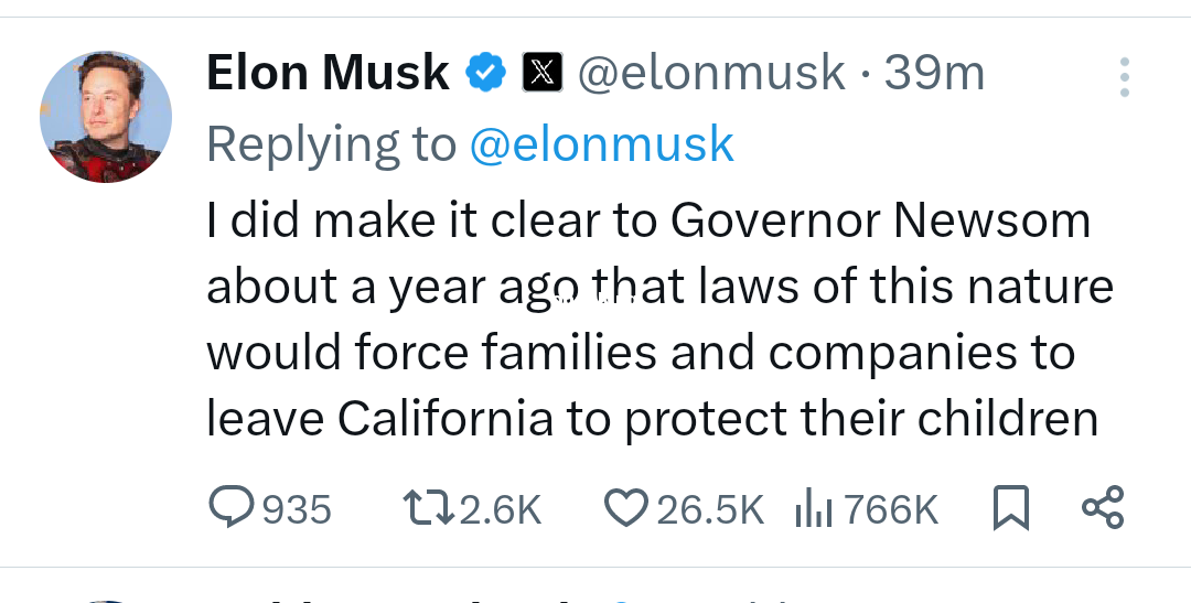 Musk was behind Tesla’s recent move to Texas as well, and previously vowed to move SpaceX’s business incorporation from Delaware to the Lone Star state.. The post Elon musk moves his company HQ from California to Texas in response to new law banning schools from telling parents their child is tr@nsg3nder Appeared first on X.ADNG.NG FREE ADS TO 10000 SOCIAL MEIDIA USERS DAILY.