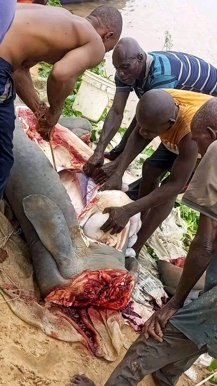 Fishermen catch and butcher marine animal, Manatee in Bayelsa community
