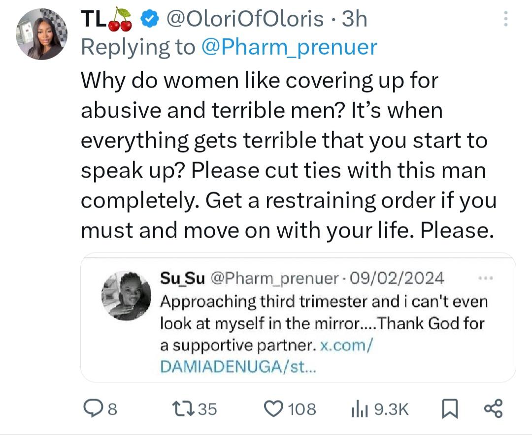 She added: “The only thing i will keep learning is how to be good to him,the way he’s been good to me.” then, revealed that she Now, months later, she revealed on X that her husband used money meant for her surgery to buy a phone and a dog. She also accused him of abandoning her and their newborn daughter in the hospital. X users are now sharing her old tweets while asking why women cover up for their men even when they are being abused. See below.