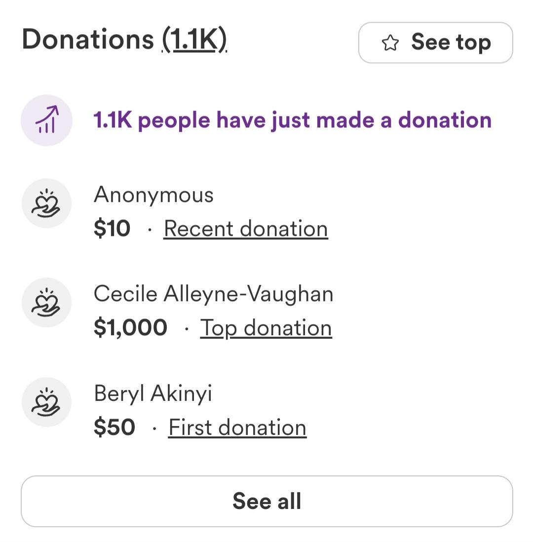 The amount keeps increasing each time the GoFundMe page is refreshed. So far, over 1.1k people have made donations. The highest donor gave $1,000.