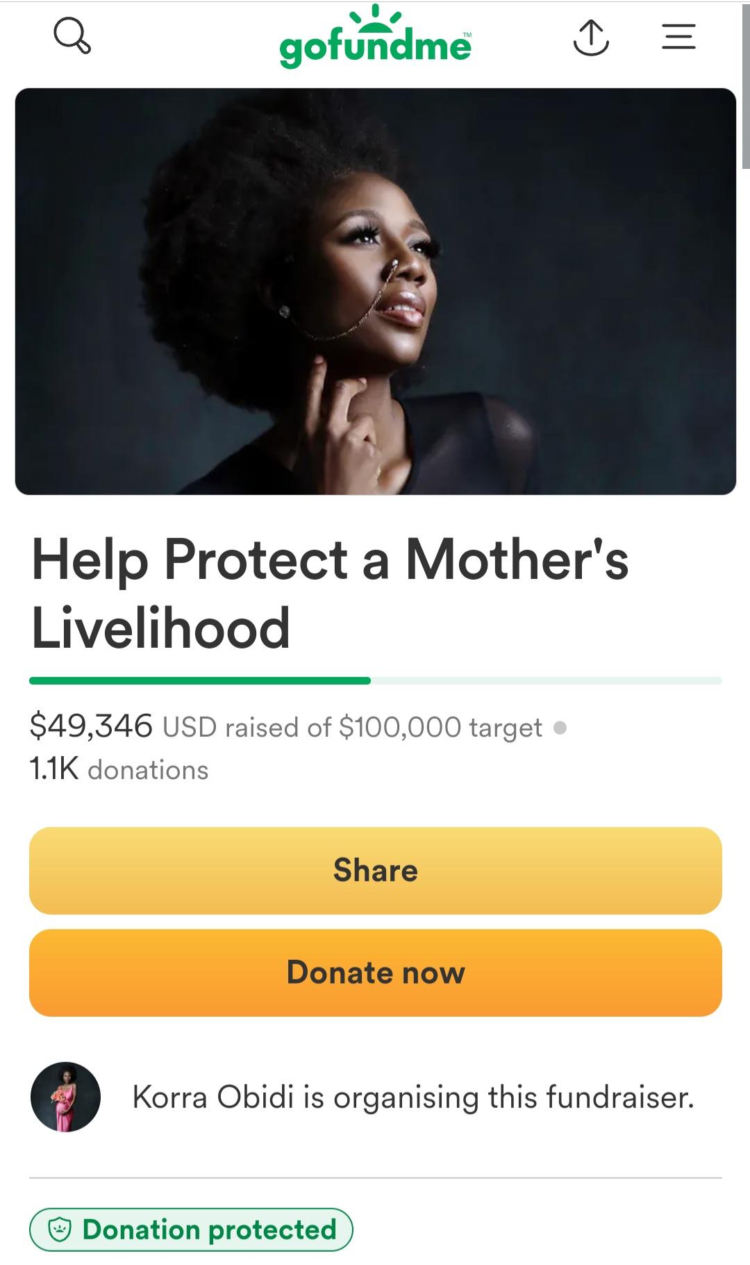 Korra Obidi has raised almost $50,000 after opening a GoFundMe account to raise legal fees as she prepares to battle ex-husband Justin Dean in another court case. This week, Justin Dean obtained image rights protection from Meta to stop Korra from featuring their children on Facebook. All videos Korra shared on the platform with her kids in them were taken down from Facebook and her page was demonetised. She did a video begging for financial aid to fight the decision in court (read here). Justin also did a video, admitting he got in touch with Facebook. He added that he will never let his kids back on Facebook (read here). Well, Korra’s attempt at raising morning for legal fees has been successful so far. In less than 48 hours after creating a GoFundMe account, Korra, whose aim is to raise $100,000, already has $49,346 and counting.