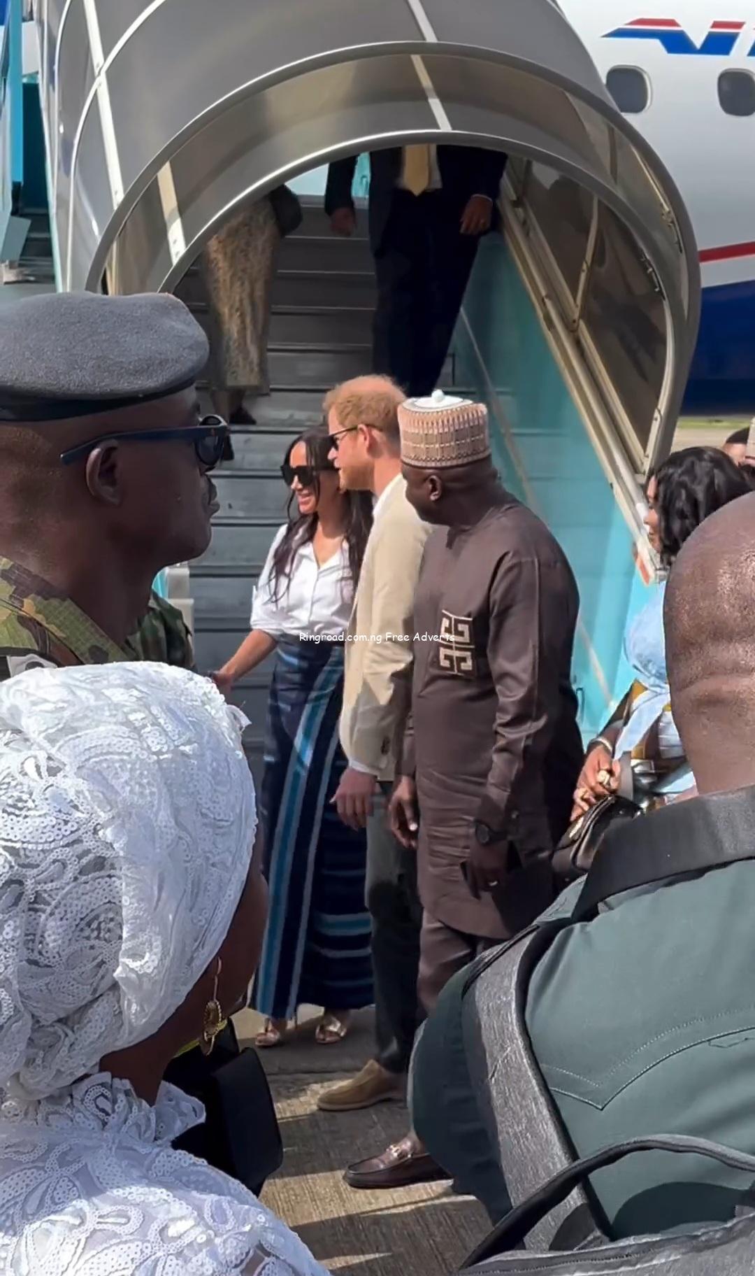 Meghan Markle and Prince Harry stepped out for their last day in their tour of Nigeria. The couple arrived Lagos on Sunday morning, May 12.They were welcomed with a dance performance by a cultural troupe.