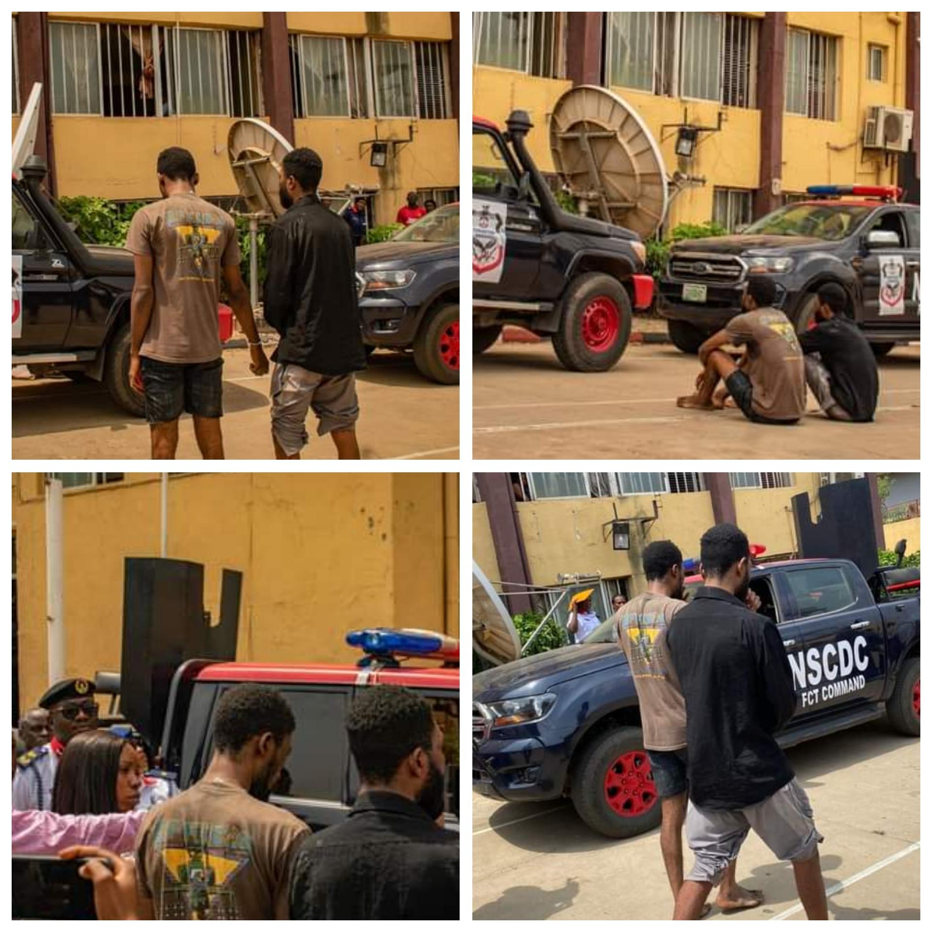 Nigeria Security and Civil Defence Corps(NSCDC), Federal Capital Territory(FCT) Command has apprehended two members of a cybercrime syndicate specialized in impersonating officers of NSCDC and other government officials. The suspects, Henry Ushie Odep, 34 and Emmanuel Ushie Odep, 23, both brothers from Cross River State, after 7 months of a well-coordinated covert operation by men of the NSCDC FCT Command with the assistance of the Delta and Anambra State Police Command. Parading the suspects at the Command Headquarters at Wuse, Zone 5 on Tuesday, April 30, 2024, the Commandant, Olusola Odumosu, warned all cybercriminals who specialize in defrauding people to desist or be ready to face the long arm of the law. You recall the NSCDC FCT Command alerted the public in a press release of the existence of a fake Facebook account opened by an individual in the name of Commandant Olusola Odumosu, FCT Commandant, he said. Today I am glad to inform you that the manhunt for this suspect which began 7 months ago and followed by a well-coordinated covert operation by men of the NSCDC FCT Command with the assistance of the Delta and Anambra state commands has smoked out the masterminds behind the fraudulent Facebook account.” He explained further that the first to be arrested was Emmanuel Ushie Odep. After being lured to Abuja and apprehended by our personnel, he made a very useful confessional statement which led to the arrest of Henry Ushie Odep, his elder brother who was in possession of the phone used to operate the fake Facebook account bearing Olusola Odumosu. Henry confessed to opening the fake Facebook account immediately after the Commandant was appointed as the FCT Commandant in August 2023. Emmanuel Ushie Odep admitted to being the one withdrawing monies sent to the opay account by his brother (Henry) through POS machine until he was arrested by the officers of the FCT Command in Abuja. Commandant Olusola Odumosu stated further that on interrogation, Henry Ushie Odep said that he started online fraud in 2016 and he is the one who lured his younger brother Emmanuel Ushie Odep into the fraudulent act. He confessed to duping a lot of unsuspecting Nigerians of different sums of money under different guises in cyberspace. He also disclosed that he is the same person behind the defrauding of so many people through a fake Facebook account opened in the name of late Helen Amakiri, eight years ago (2016), then an assistant Commandant General. Investigation reveals that they operate Opay, Moniepoint and Palmplay accounts to receive money from unsuspecting persons but no bank account with traditional commercial banks. It was also discovered that they use two accounts belonging to one Victory Chinaoromwhi, who according to them never knew they were into cyber fraud. According to Henry, his friend Chibuike Okorie introduced him to cybercrime. The said Chibuike is currently in Kuwait as he has relocated from Nigeria. The following people, Amadi Chisom (F) 31 years old and Mrs Okafor Evelyn (F) 24 years whose names came up in the course of the investigation and were arrested alongside the principal suspect have been granted bail. Items recovered from the suspects include the Moniepoint POS Machine( 1), Opay POS machine (1), Techno Spark 10 phone(1), Techno Pop 8 phone (1), and Infinix phone (1). Commandant Odumosu said the arrest should serve as a deterrent to others in this illicit business. He said the NSCDC FCT Command in collaboration with other security agencies will continue to launch its dragnet into fighting any form of criminality that will contravene the peace, security and any other government’s interest for the people.