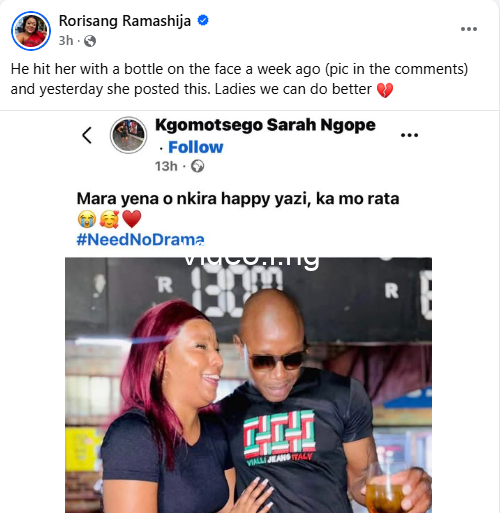 “He hit her with a bottle on the face a week ago and yesterday she posted this. Ladies we can do bet,” one Rosaring wrote.