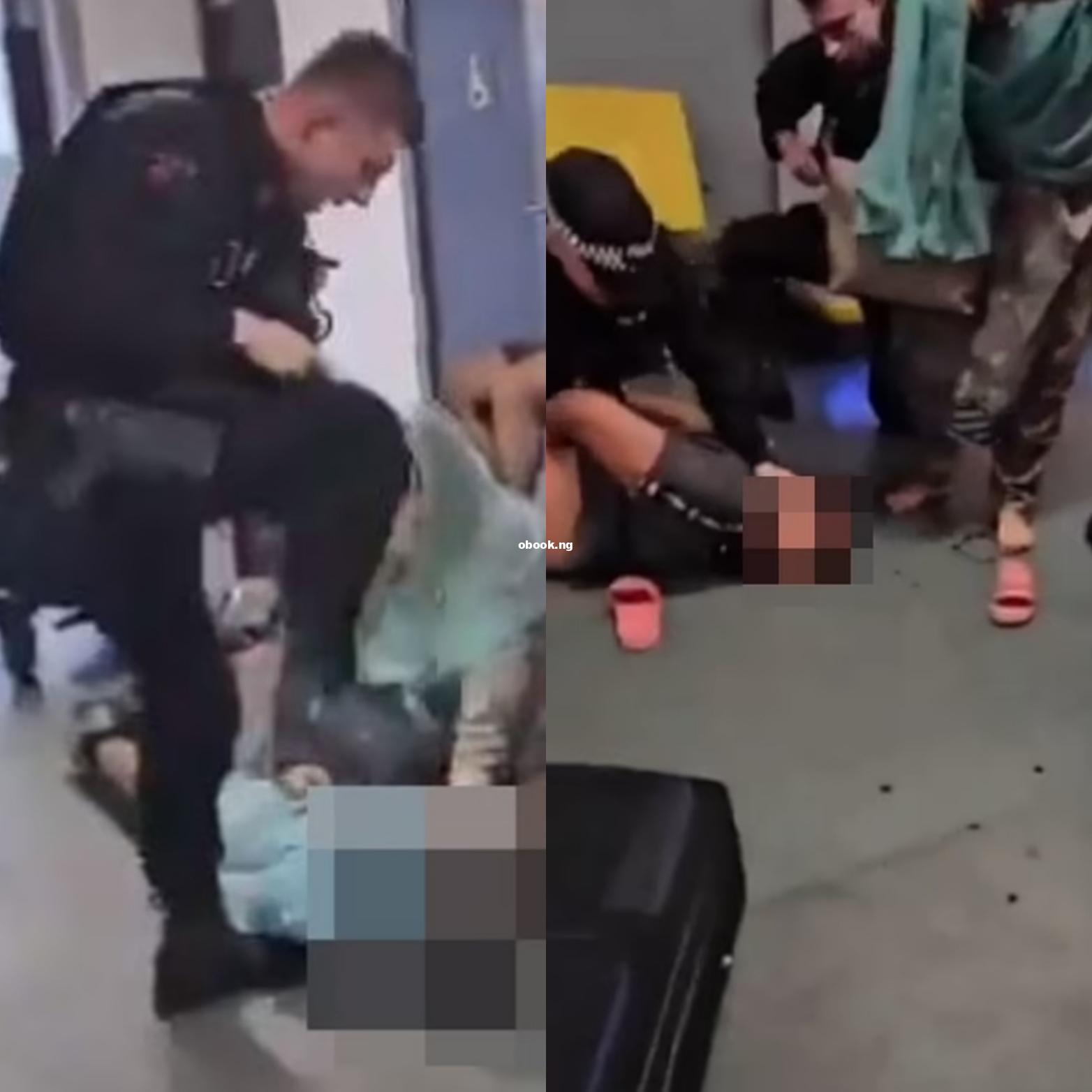 An armed Greater Manchester Police officer was filmed k!cking a detained man in the head before st@mping on him as he is Tasered on the ground. The incident, which happened at Manchester Airport on Wednesday afternoon, July 24, shows several officers shouting at the public to stay back after they were called to reports of an altercation at Terminal 2. While the holidaymaker, believed to be a young man, is lying with his hands behind his back, a policeman appears to violently kick his face before stamping on his head. At the same time, at least one taser is deployed against the man.