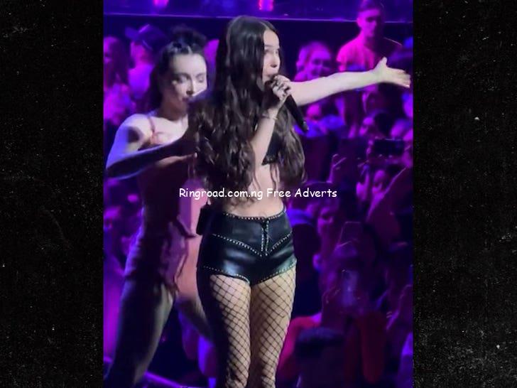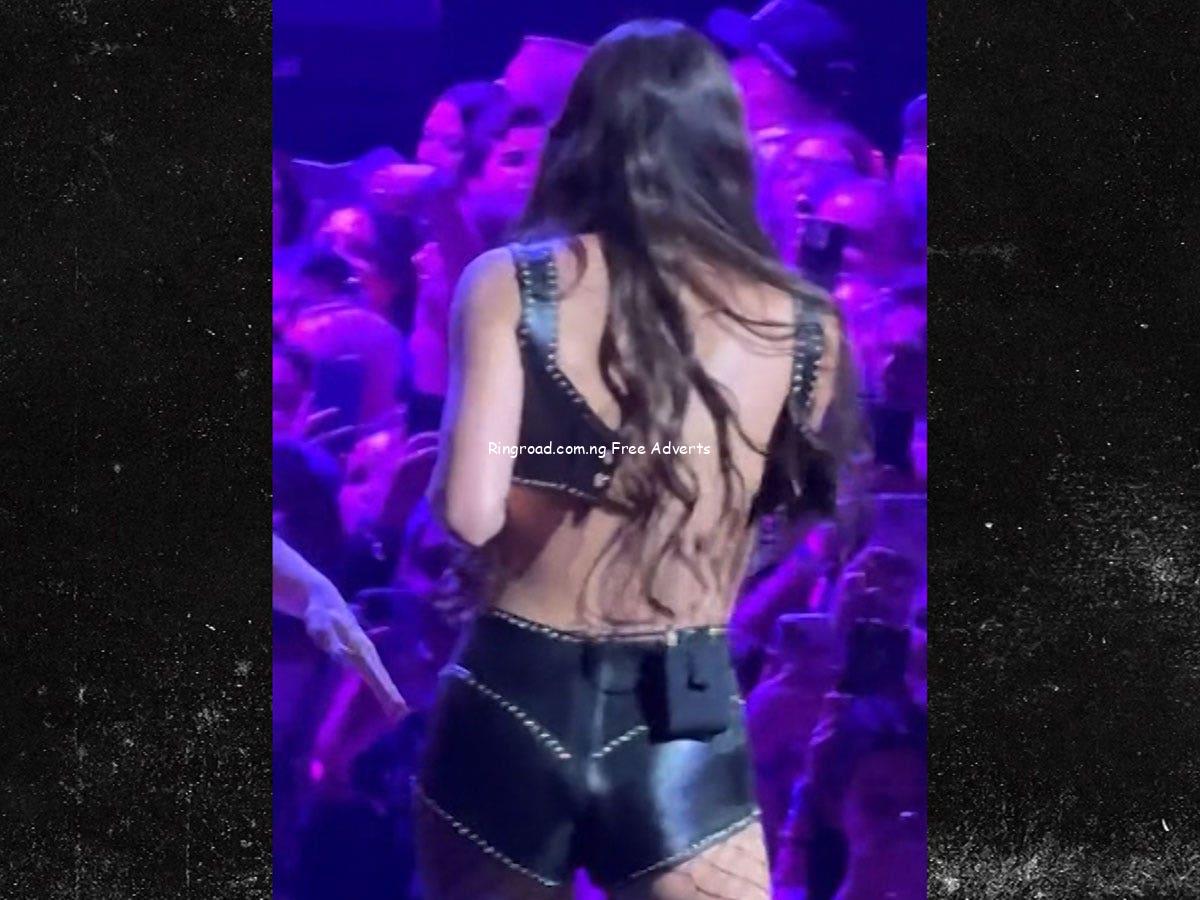 Singer Olivia Rodrigo suffers a wardrobe malfunction as her top pops off during concert
